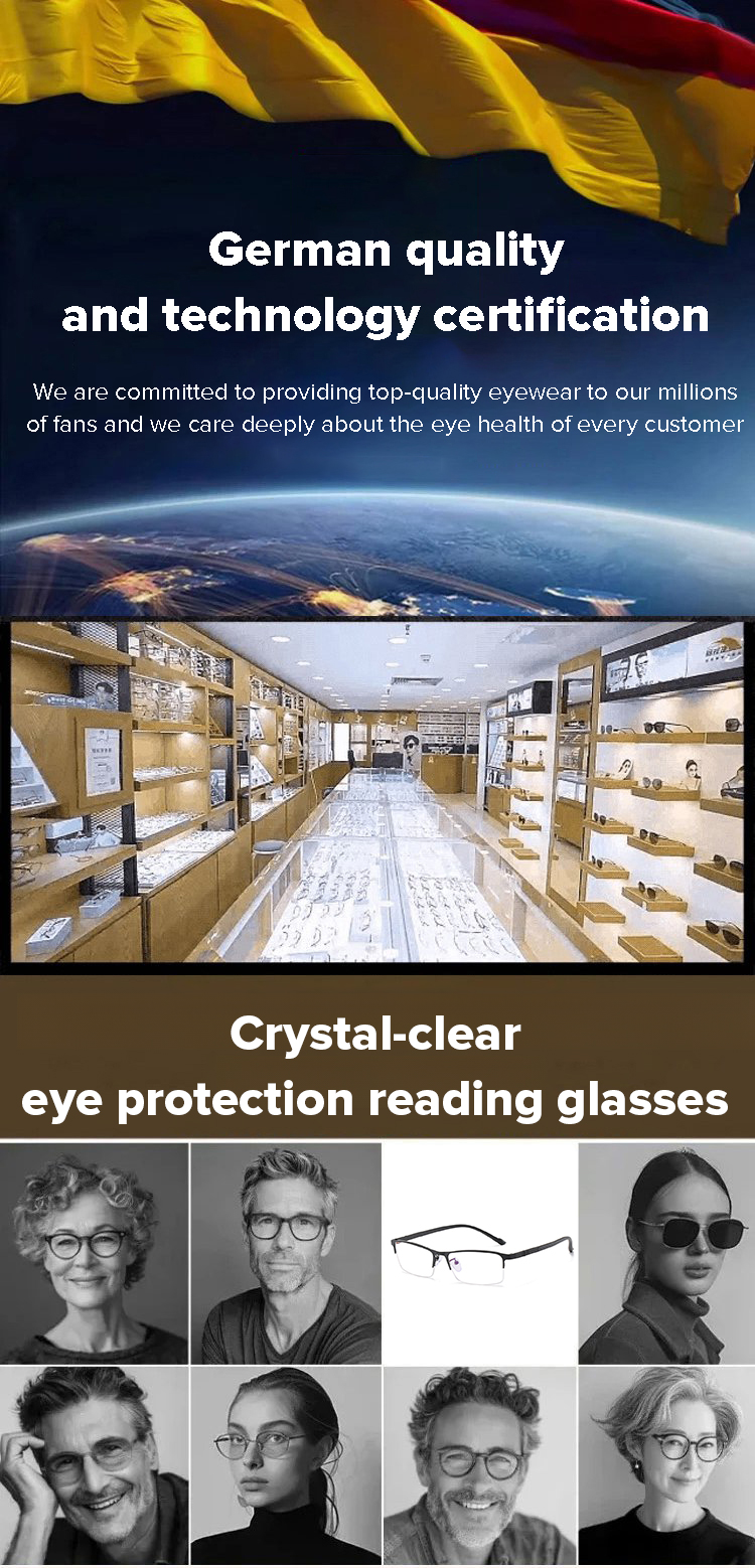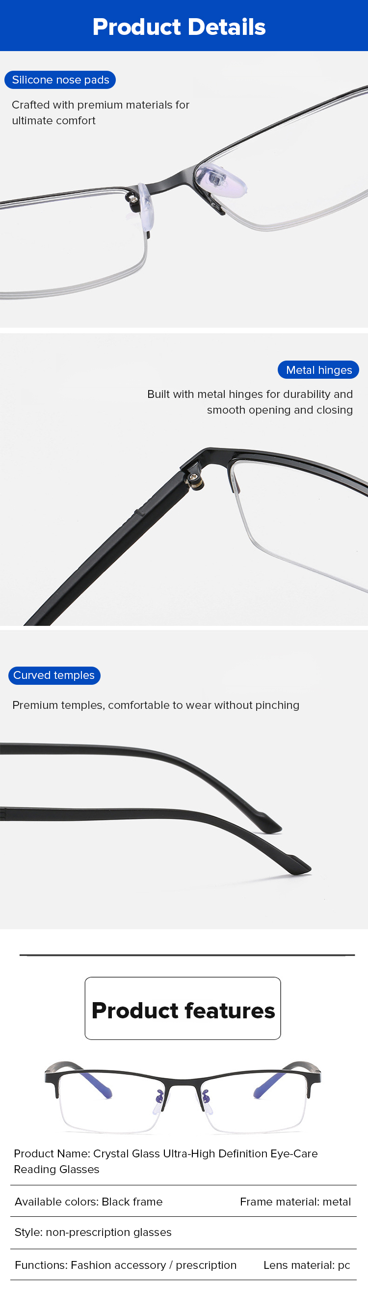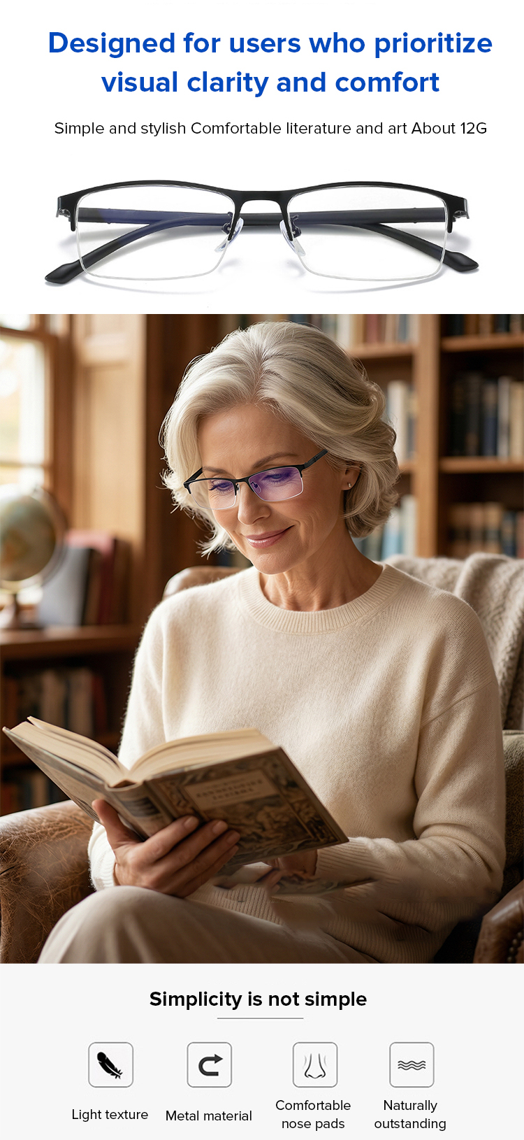 Crystal glass ultra-clear anti-fatigue reading glasses