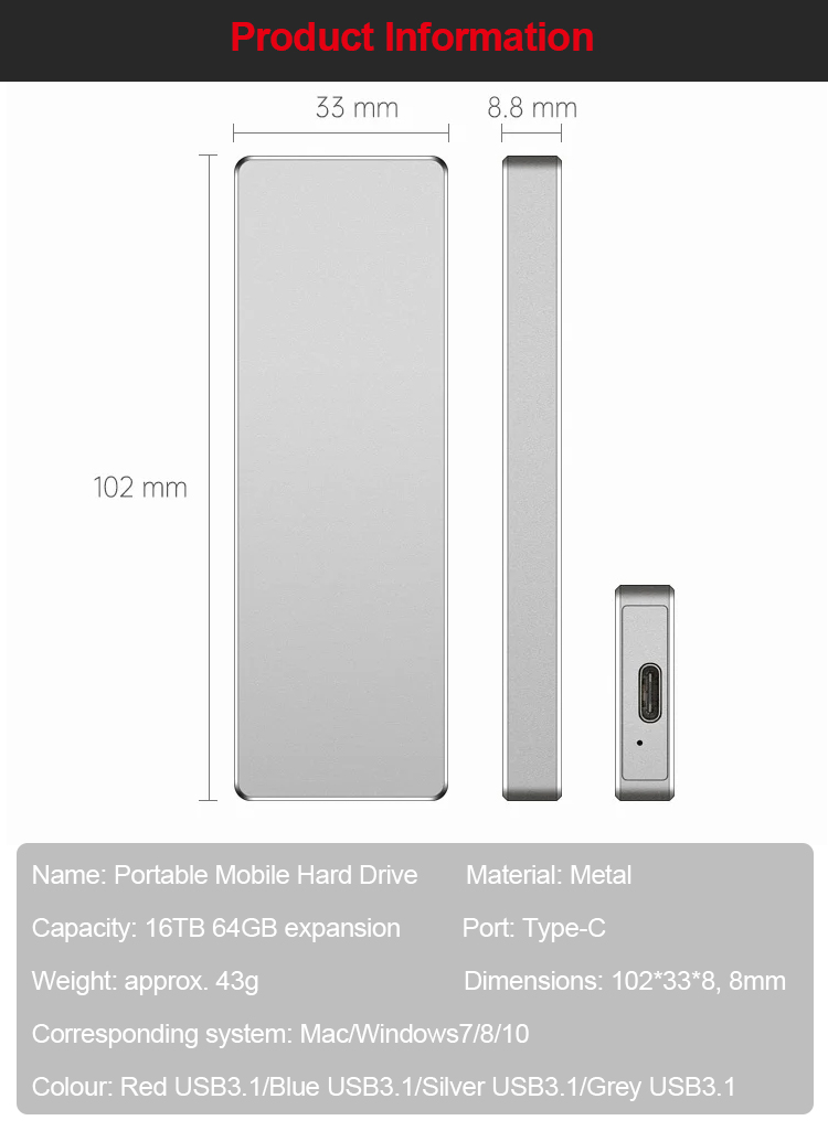 【Black Friday Limited Time 50% Off】16TB Ultra-Thin Portable Hard Drive