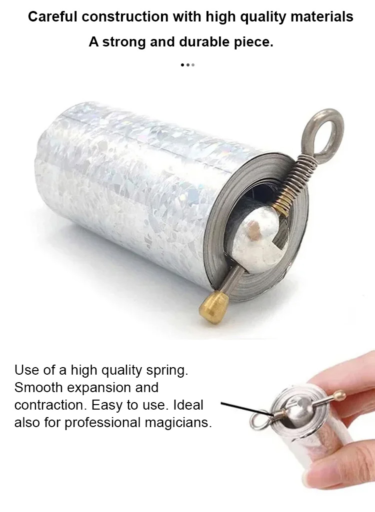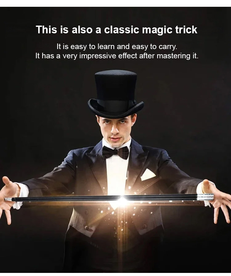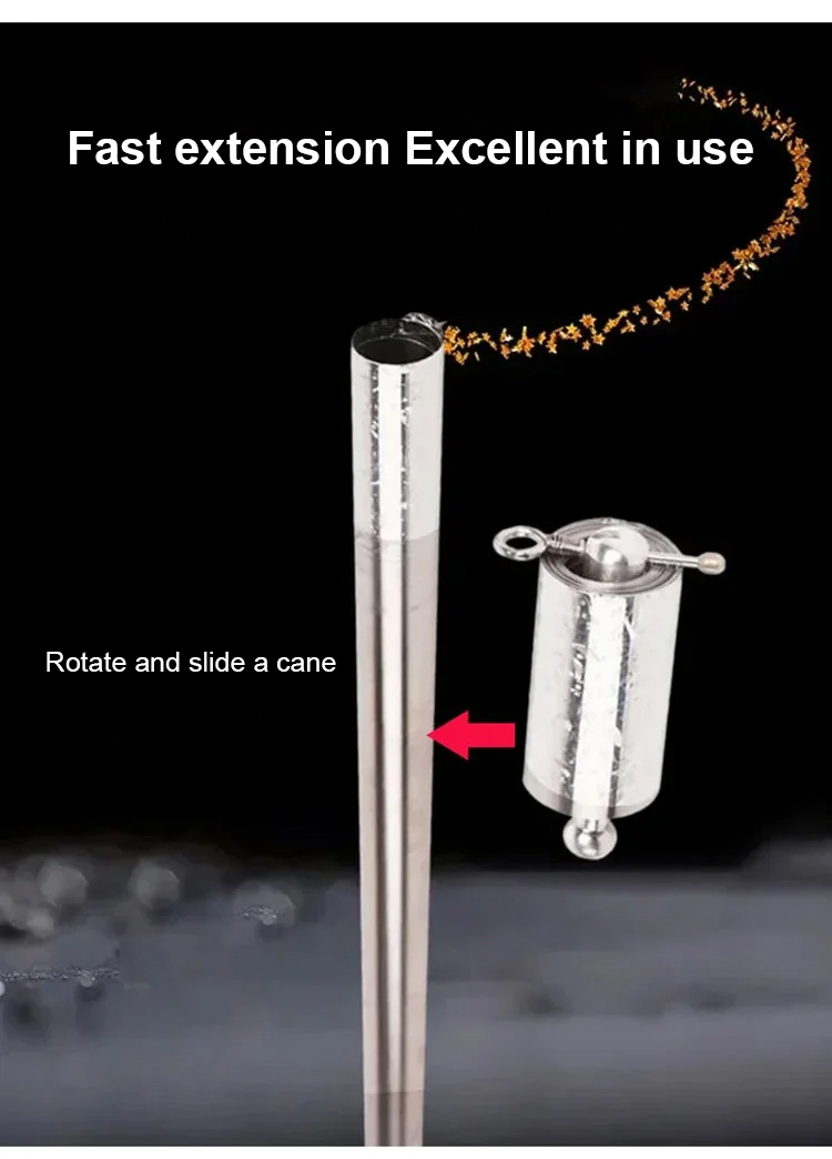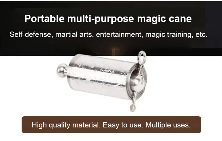 Thumb-sized and easily deployable with a simple press, it transforms into an iron rod, suitable for protection, martial arts training, and magic entertainment.