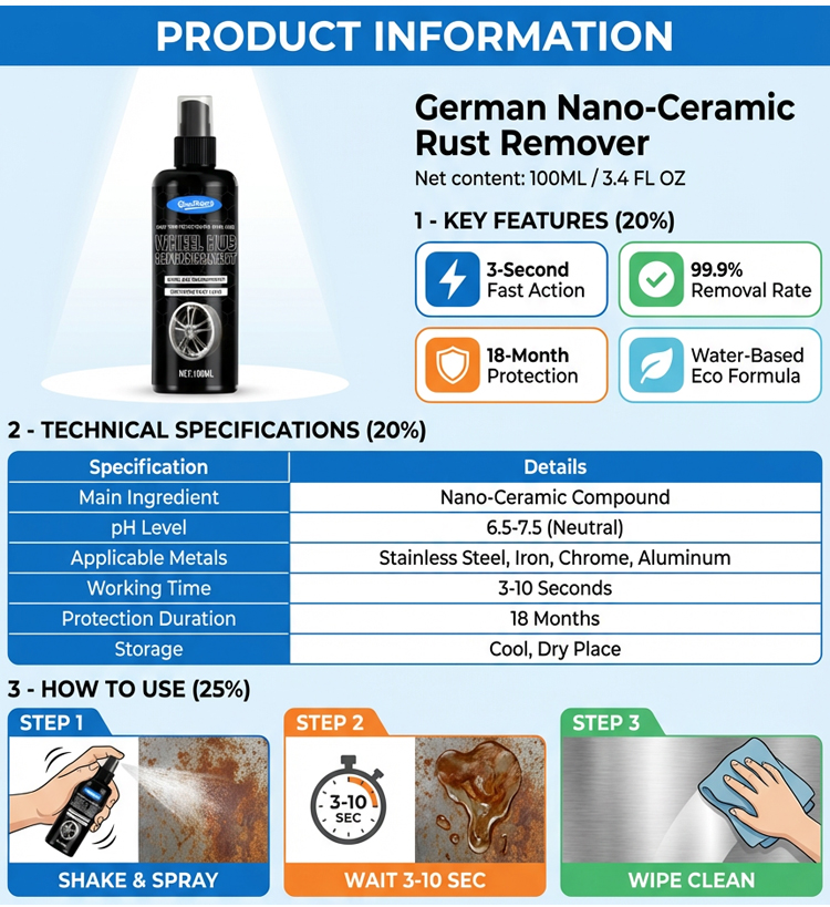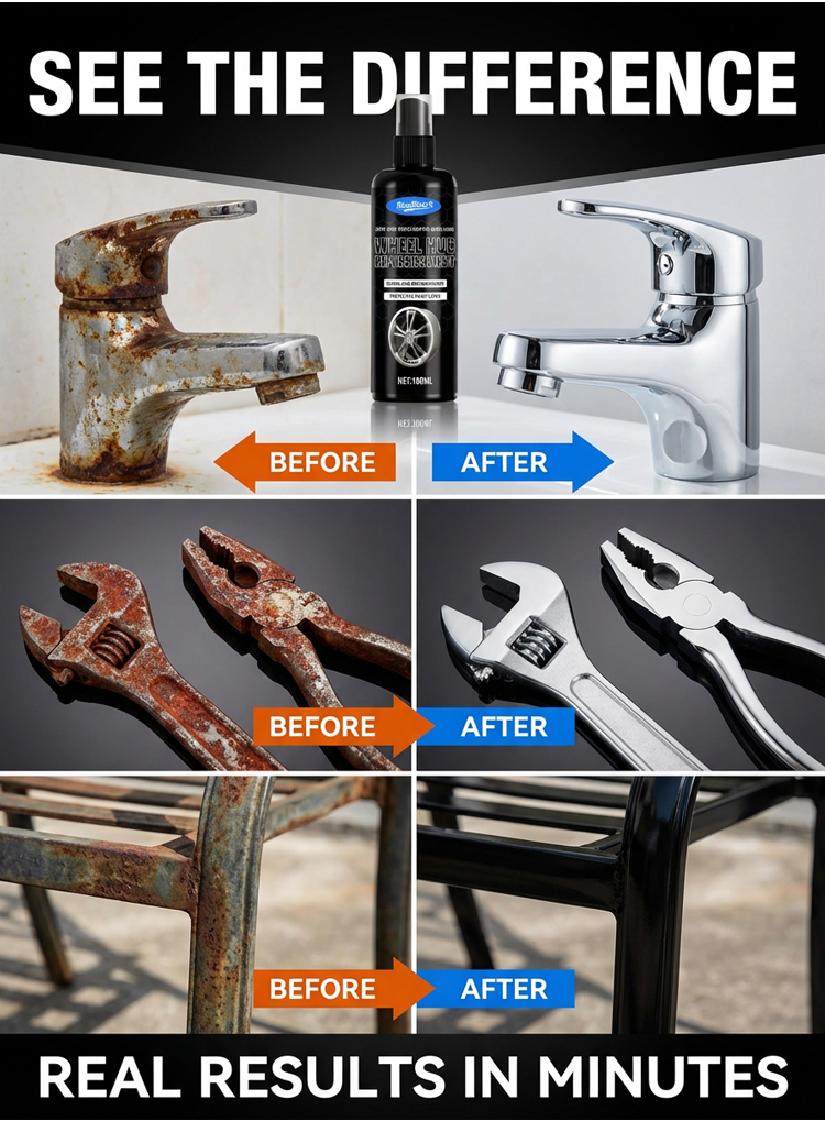 【🔥 Metal Rust Remover and Restorer】🍃Removes rust in 3 seconds - 🛡️Non-toxic and odorless - ✨Non-corrosive to metal - ⏱️Provides 50 years of rust protection