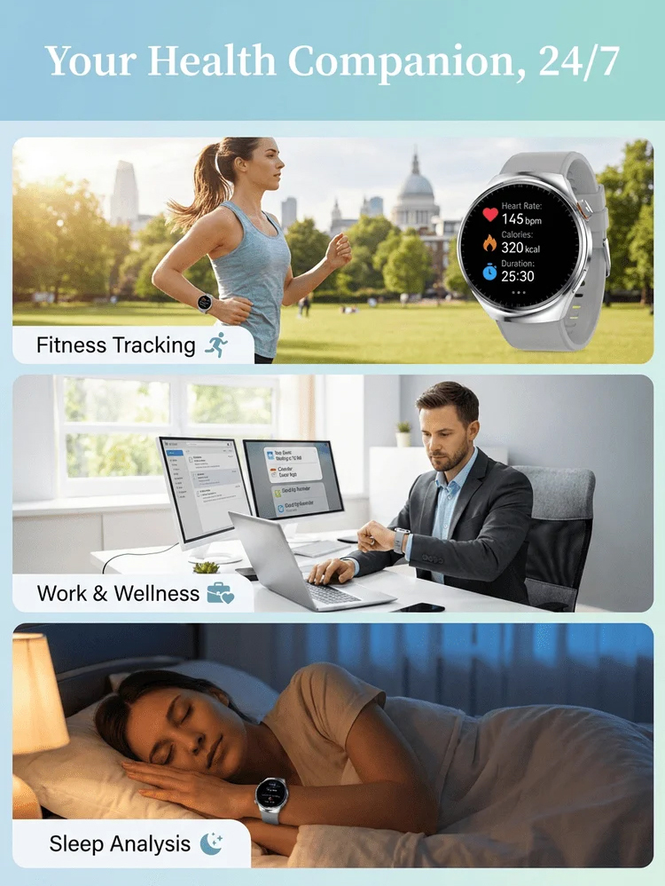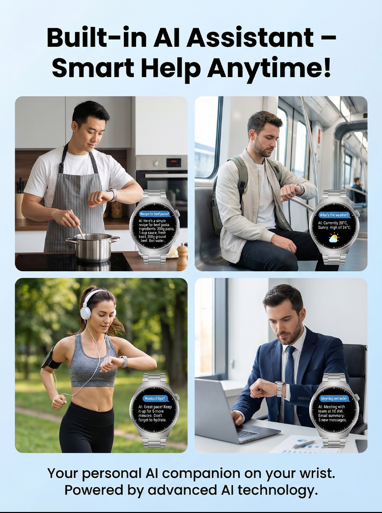 【⌚Smart Health Monitoring Watch】🫀Measures body health metrics -🏋️Offers 30+ professional sports modes -🤖Equipped with a top-notch AI model for on-demand Q&A -📞Comprehensive basic features including making calls and listening to music